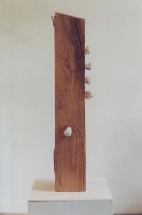 La Piedra Posted on August 27, 1993August 7, 2017 by Marina Materiales: madera, cuero y piedra Medidas: 60 cm x 12 cm x 12 cm Año: 1993
